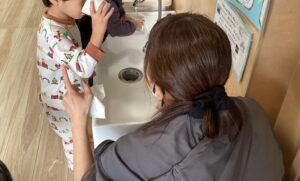 今日は2歳児さんに外から帰ってきた時にする
