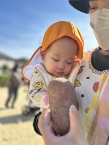 大きなお芋をぎゅっと握りしめながら・・・