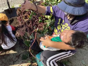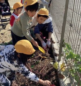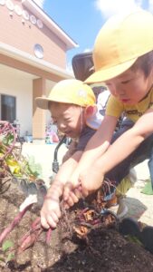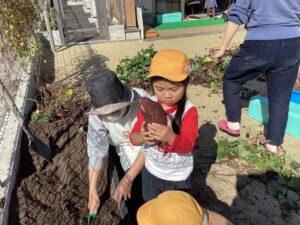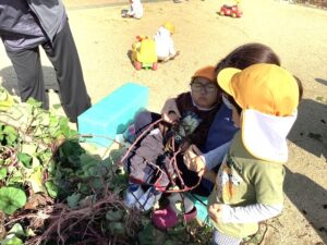 運動会後にみんなでお芋ほりをすることにしました。
