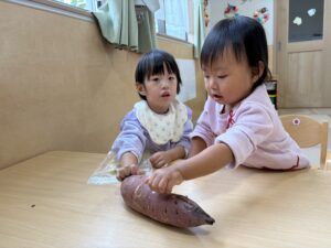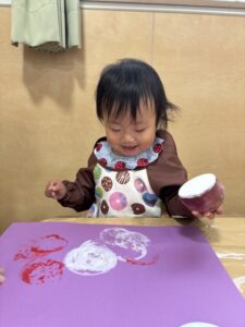 小さな子ども達はお芋でスタンプ遊びをしました。