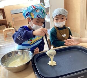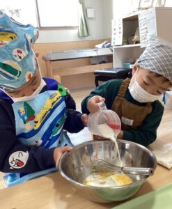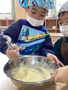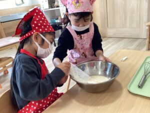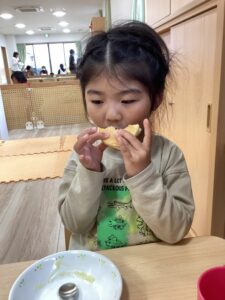 役割を分担して園児全員で作ったおやつは特別に美味しかったです。