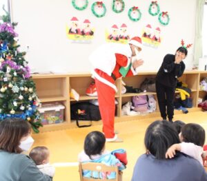 子ども達の待ちに待ったサンタさんが保育園に来てくれました。