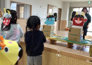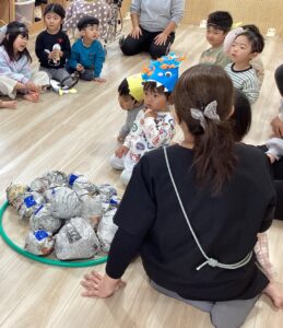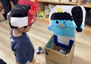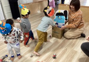 鬼退治の楽しいゲーム遊びをみんなでしました。